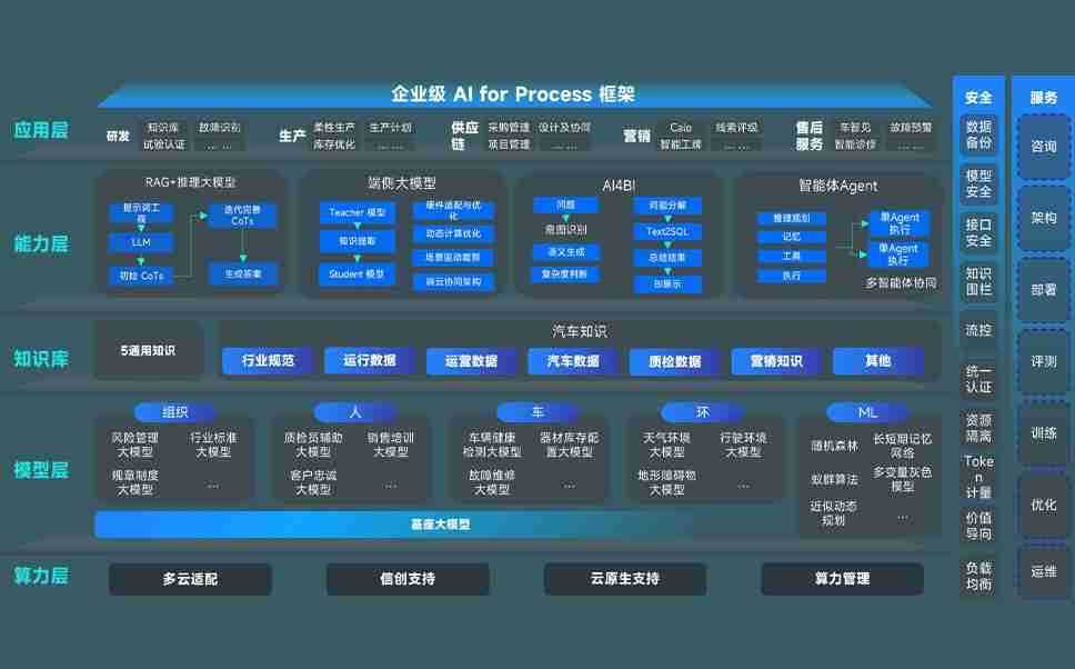 端到端的一站式AI工作空间深度融合了从企业战略规划到日常经营的全流程业务板块,,定向解决车企内部领域多、、、、部门多、、、链条长、、、场景碎片化等难题,,,支持车企快速构建以AI为核心的生产力写作体系,,,,实现任务执行与AI能力的无缝集成与交互