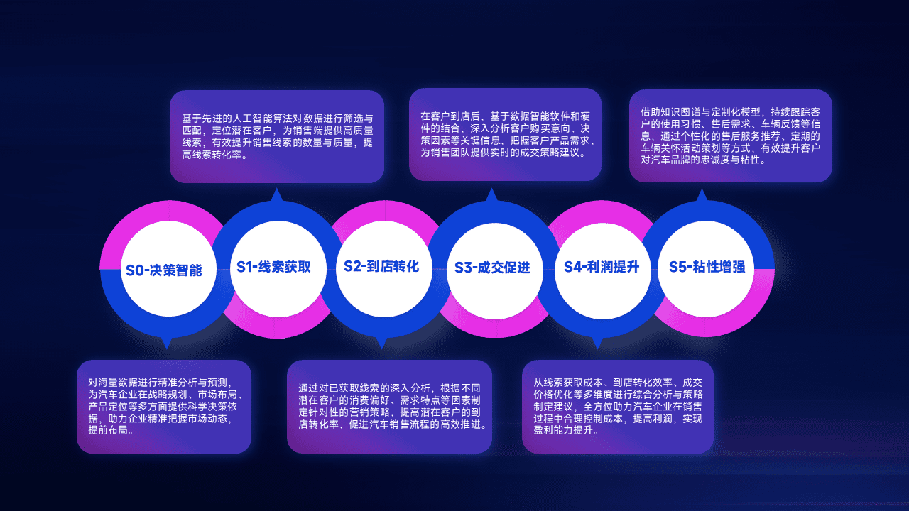 通过拓宽潜在客户来源、、、优化线索分配并提高到店转化率,,,以增强销售效率。。。。同时,,,利用线索数据不断优化分析模型,,,,有效提升转化率,,,,扩大营销影响力。。。。